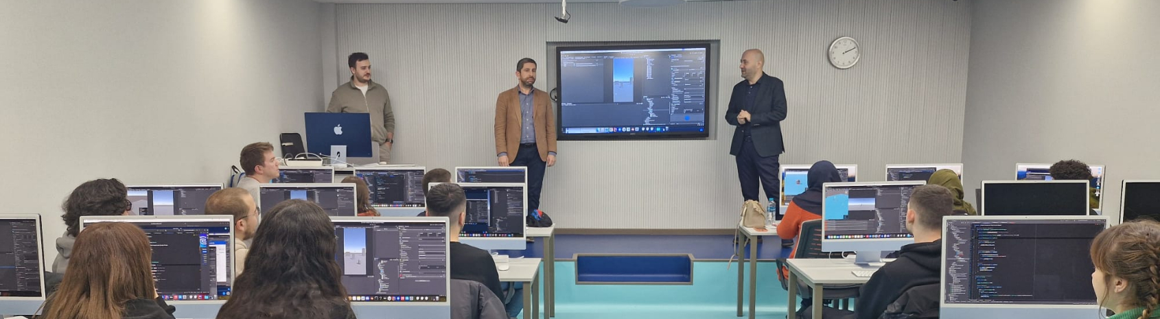 Frostline Games kurucu ortağı Cemil Bakır, YK üyemiz Murat Hazıroğlu ile birlikte ziyaret ederek, Game Developer eğitimi alan kursiyerlerimize tecrübelerini paylaştı